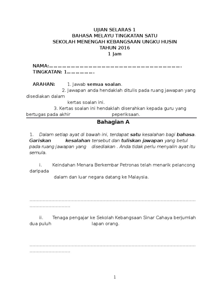 Dengan adanya kuasa ini pihak sekolah. Contoh merangka jawapan kertas 1 bahasa melayu spm. Latihan bahasa melayu tingkatan 1 pdf.
